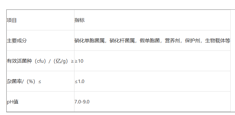 【使用條件】溶解氧:≥2 mg/L; 溫度:6~20℃(建議8℃以上開始投加),pH: 7~9;鹽度:≤15000mg/L;不含重金屬;不含生物毒性化合物。
